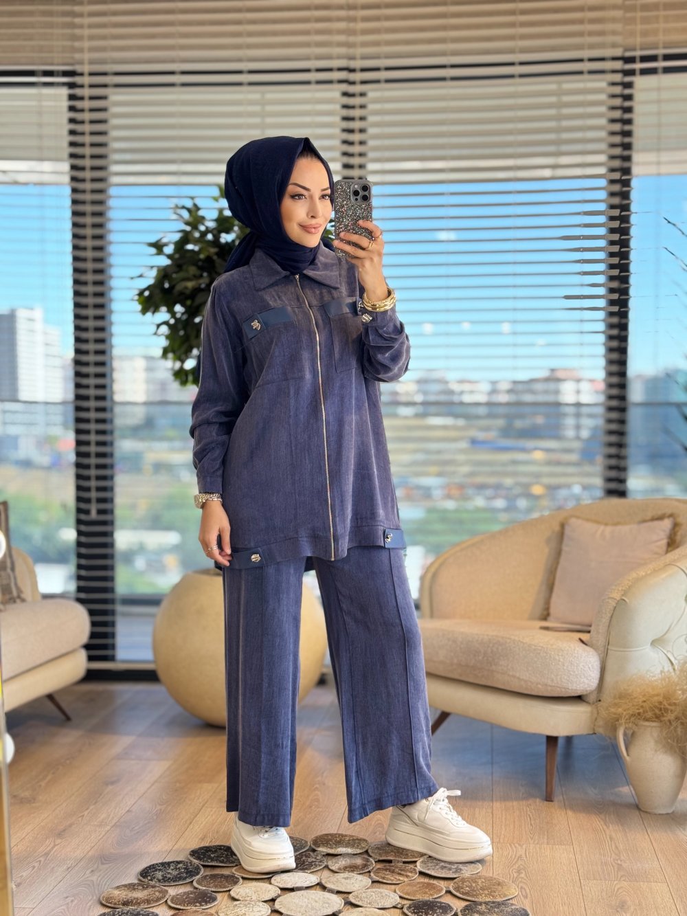 02-2634 Ön İki Cepli Fermuarlı Takım Lacivert