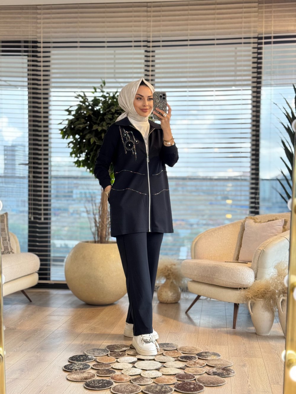 10727 Taş Arma Baskılı Üçlü Takım Lacivert