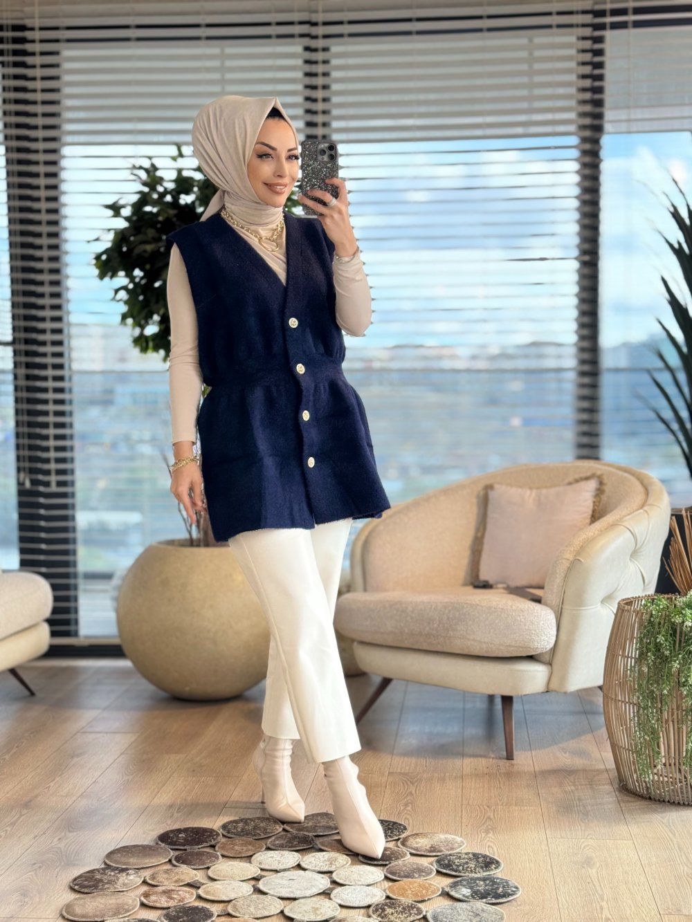 140508 Angora Uzun Yelek Lacivert