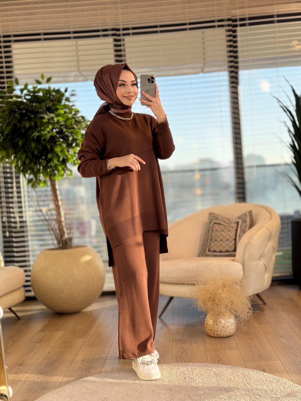 14051 İnterlok Efil Triko Pantolon Takım Kahve