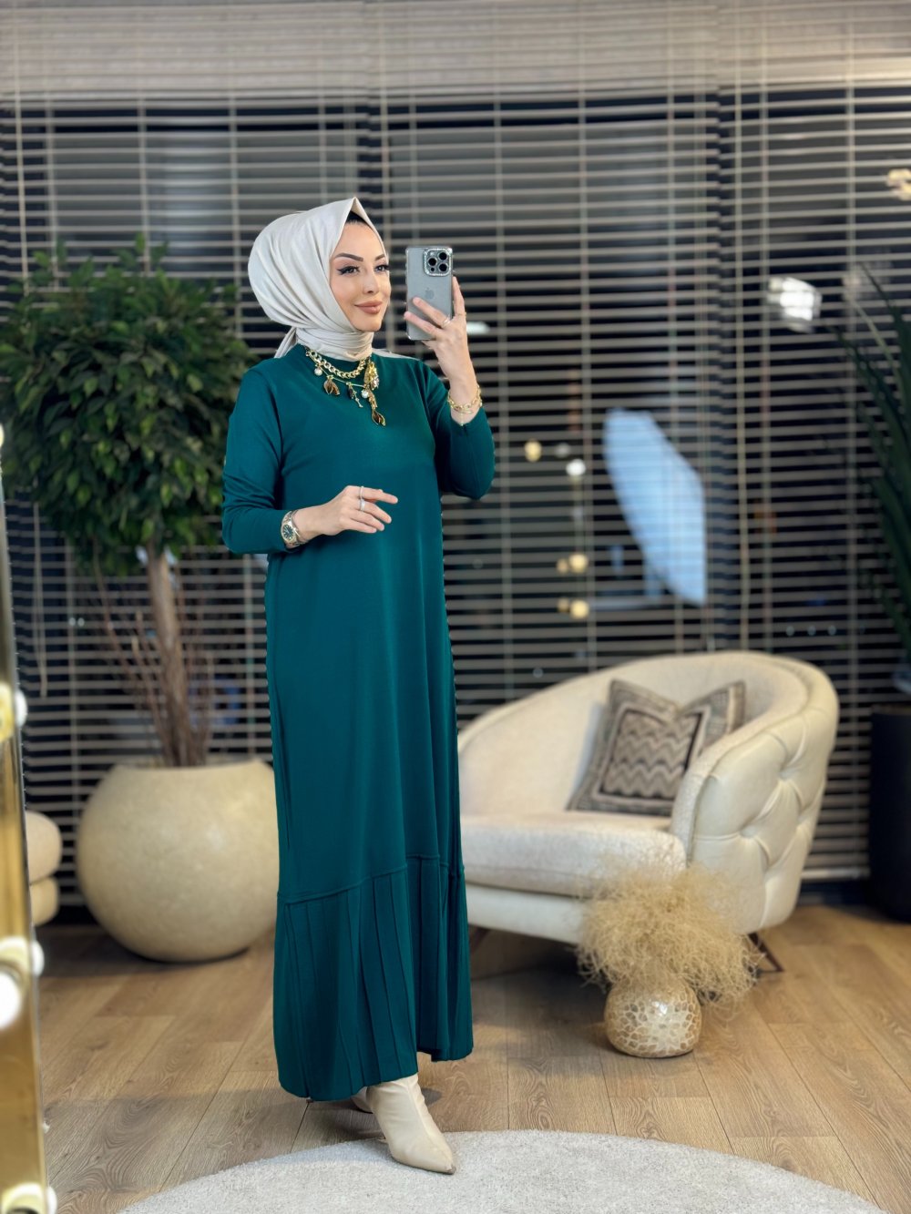 14052 Plose Triko Elbise Zümrüt