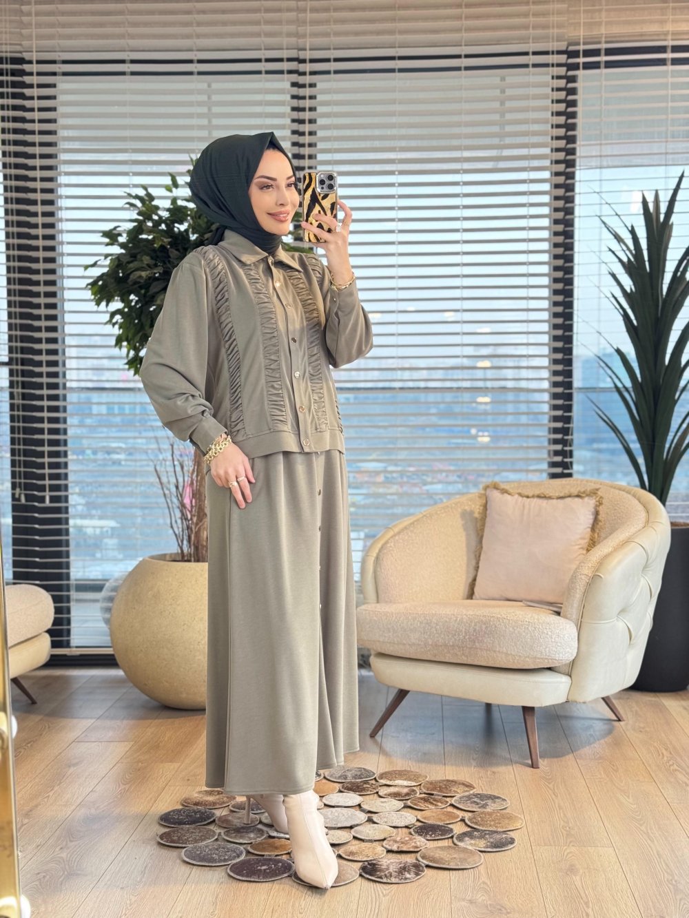 1438 Ön Büzgülü Etekli Takım Haki