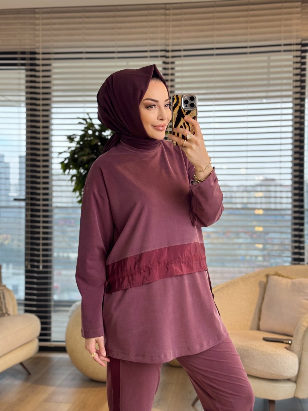 14456 Önü Saten Şerit Detaylı Takım Bordo