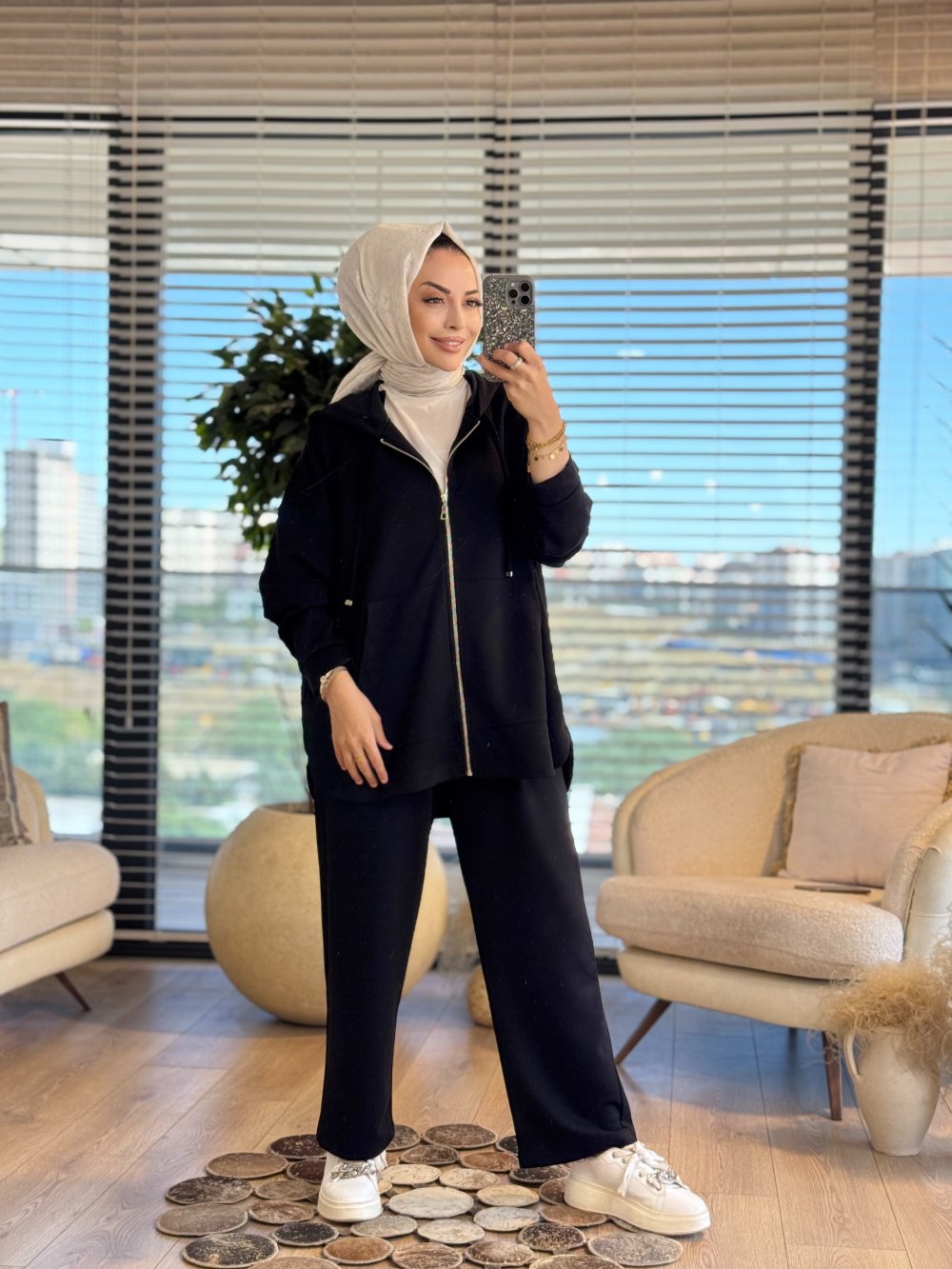 22742 Osyho Fermuarlı Kapşonlu Takım Siyah