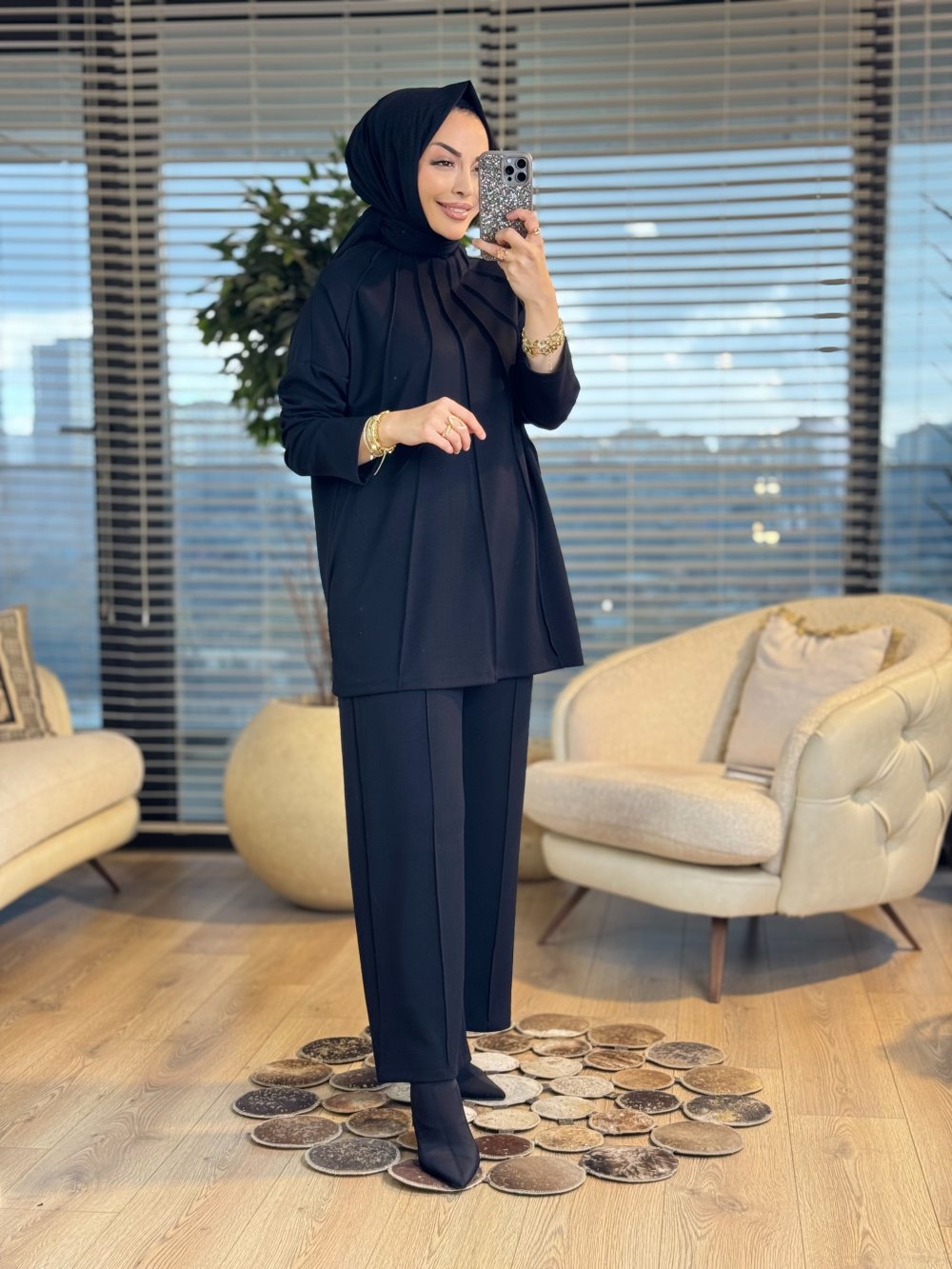 22813 Önü Nervür Dikişli Takım Siyah