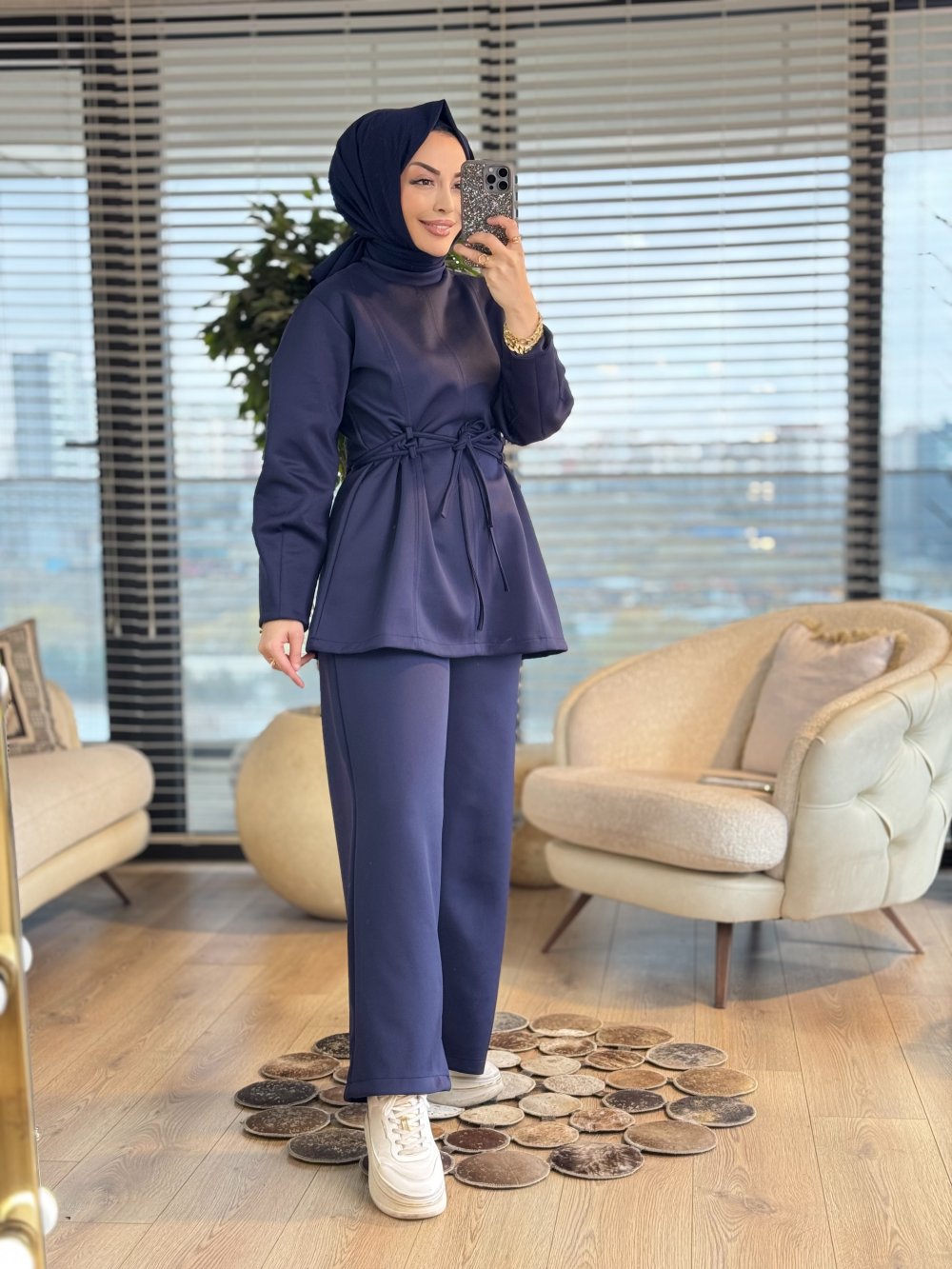 22816 Beli İki İp Geçmeli Takım Lacivert