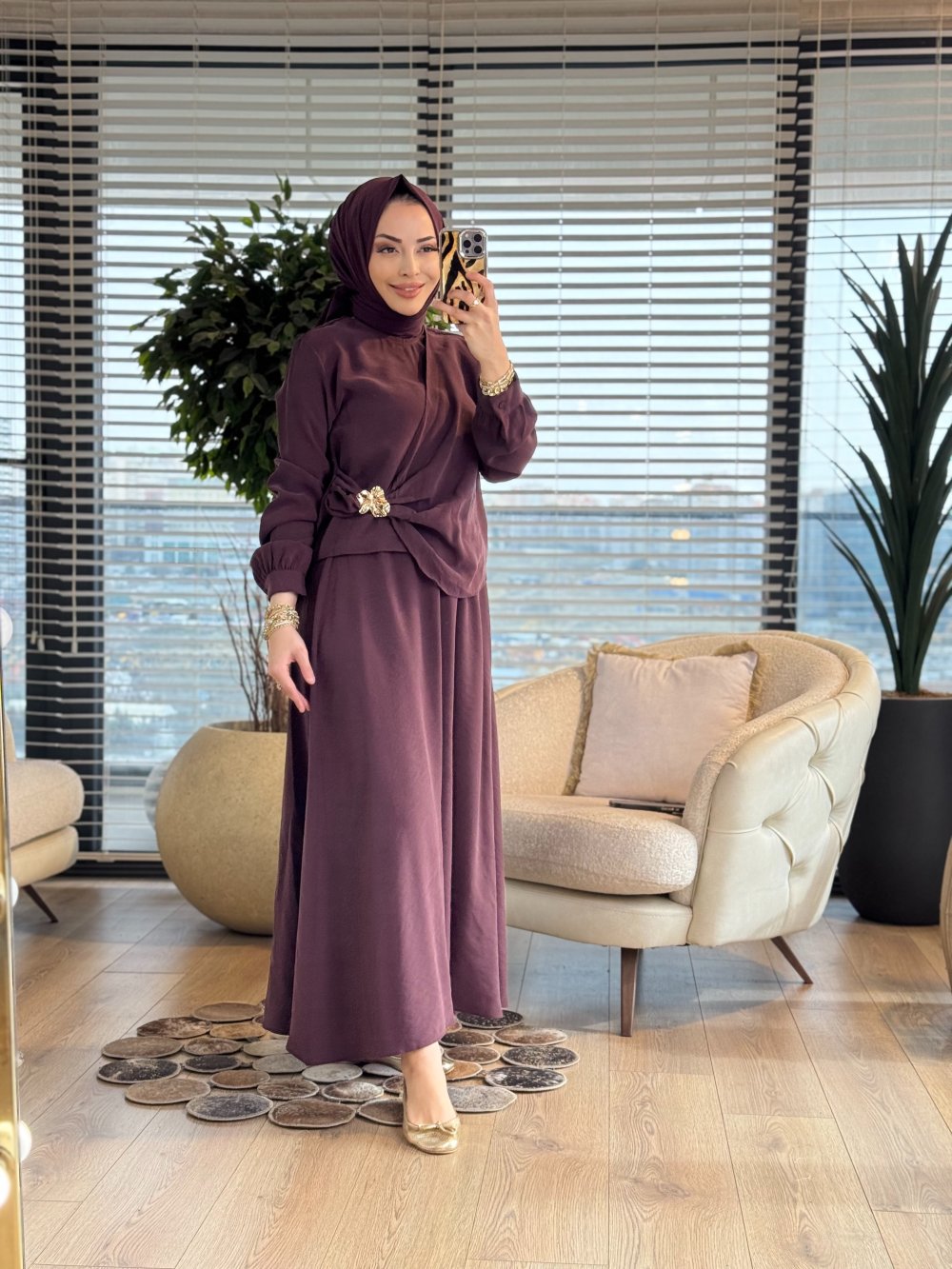 22823 Önü Parça Ve Broşlu Takım Mürdüm