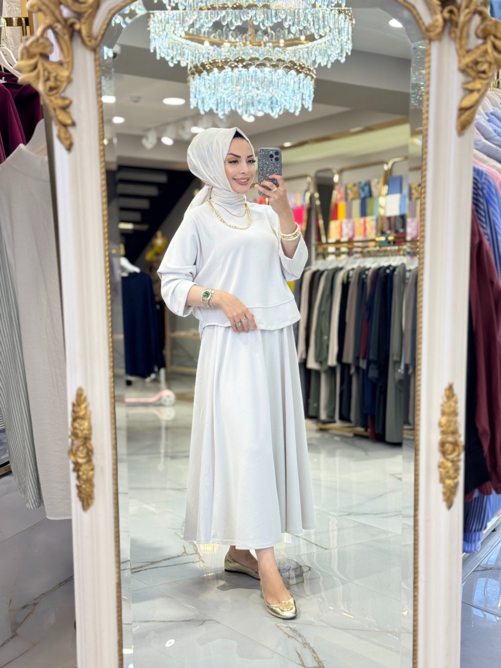 24343 Etek Ucu Parçalı Yarasa Kol Bluz Bej