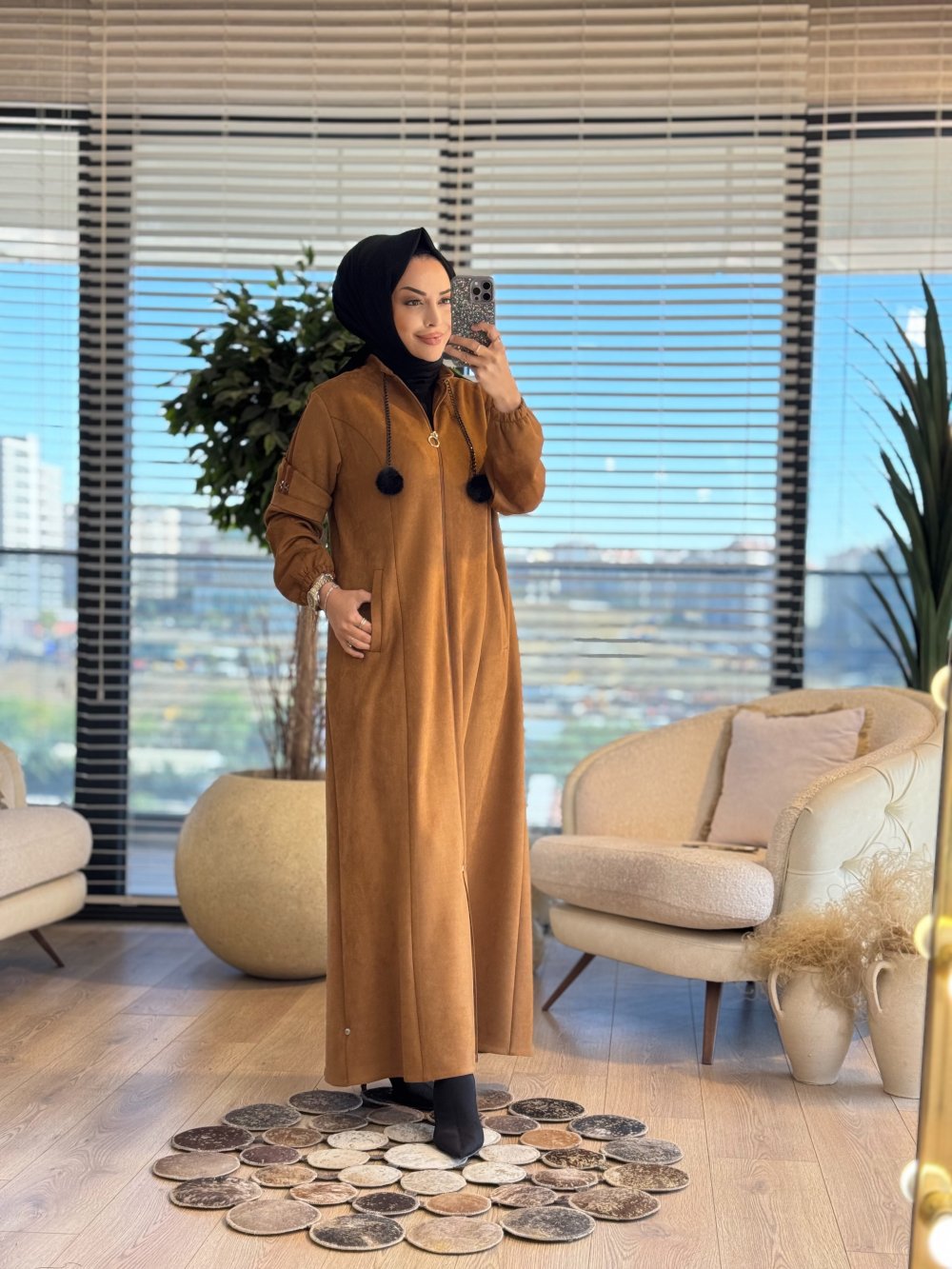 2571 Kolu Şeritli Süet Pardesü Siyah