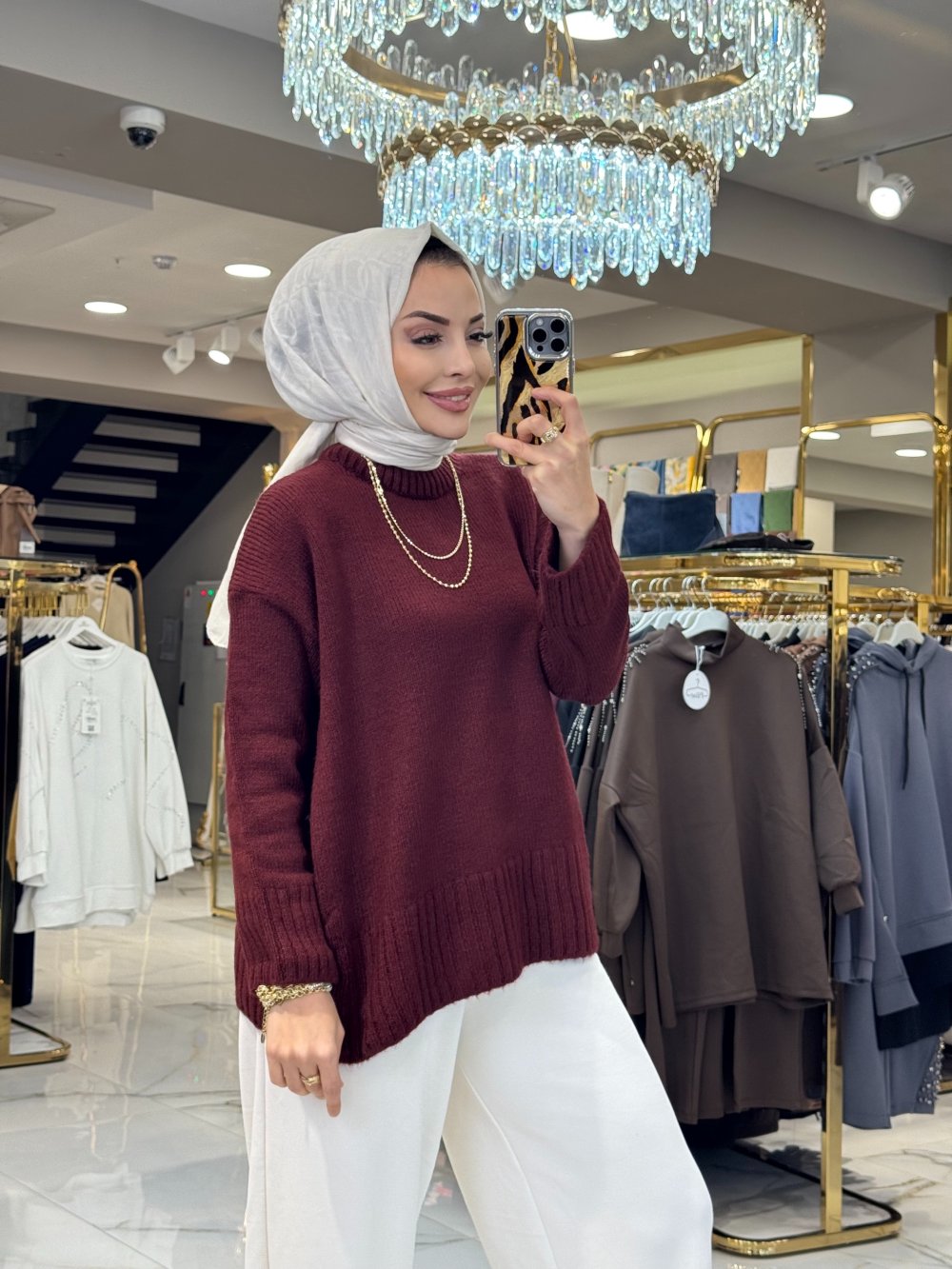 2572 Bisiklet Yaka Triko Kazak Bordo