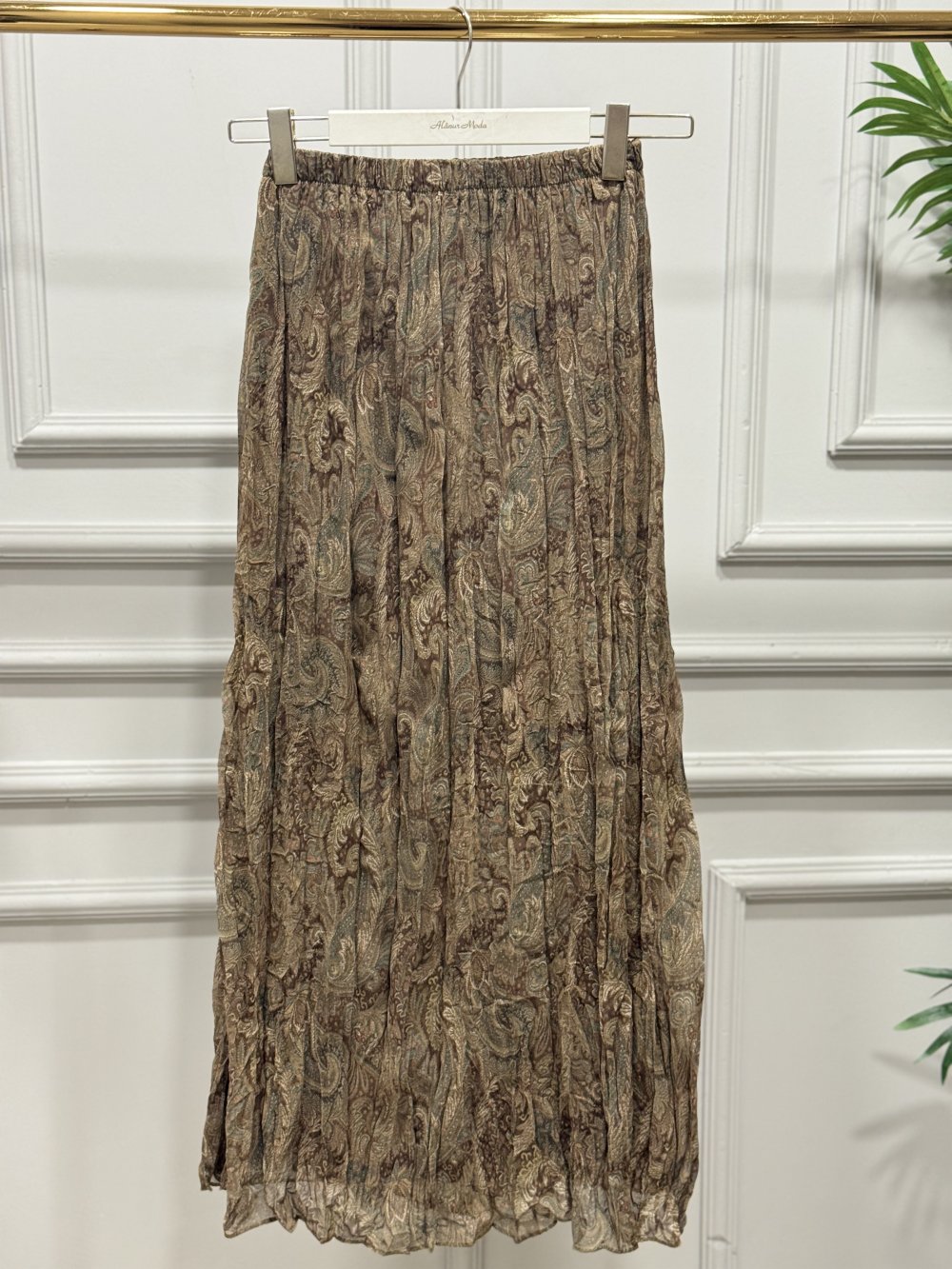 27032 Şifon Şal Desenli Kırışık Etek Haki