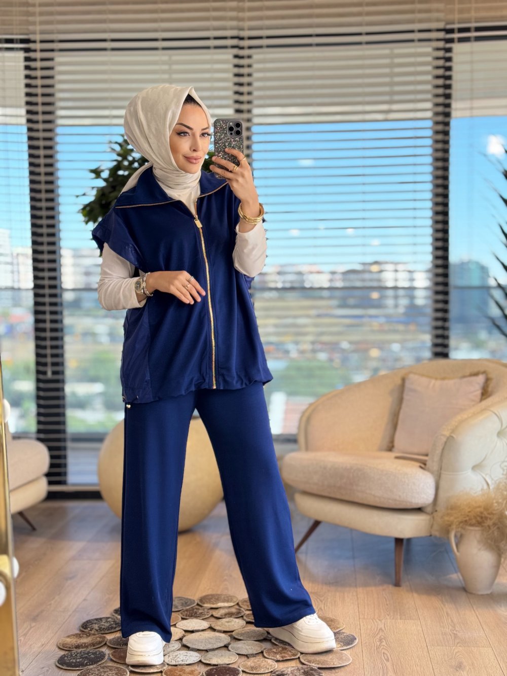3063 Garni Detaylı Yelekli Takım Lacivert