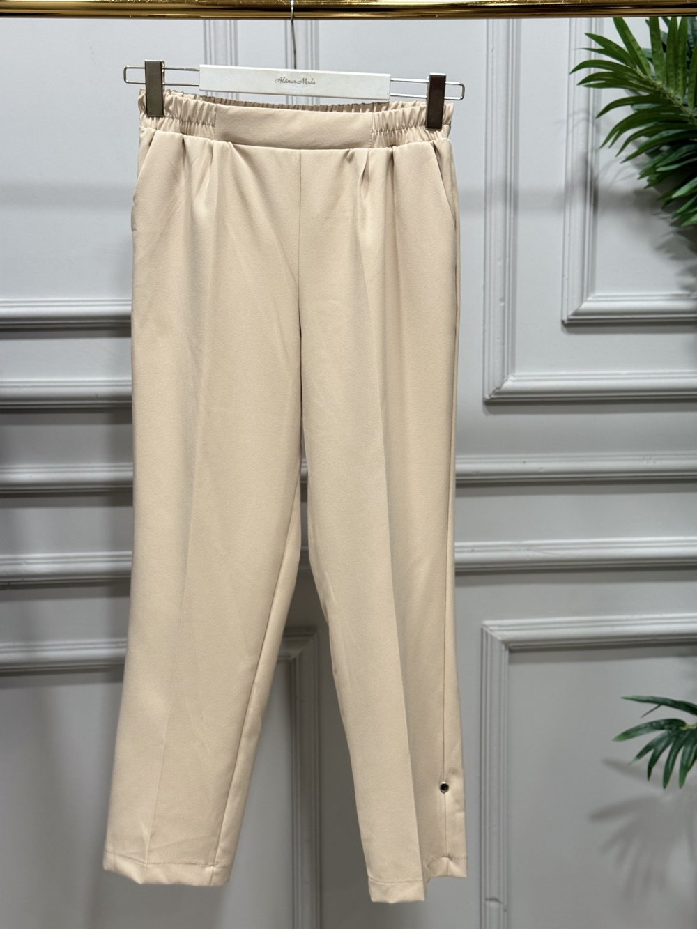 3229 Beli Lastikli Pantolon Bej