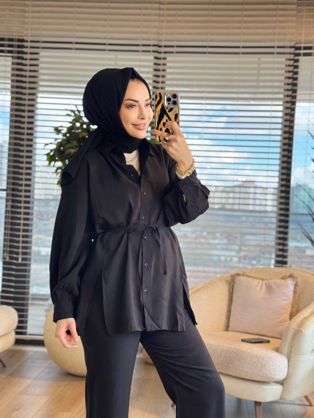 3230 Yırtmaç Detaylı Takım Siyah