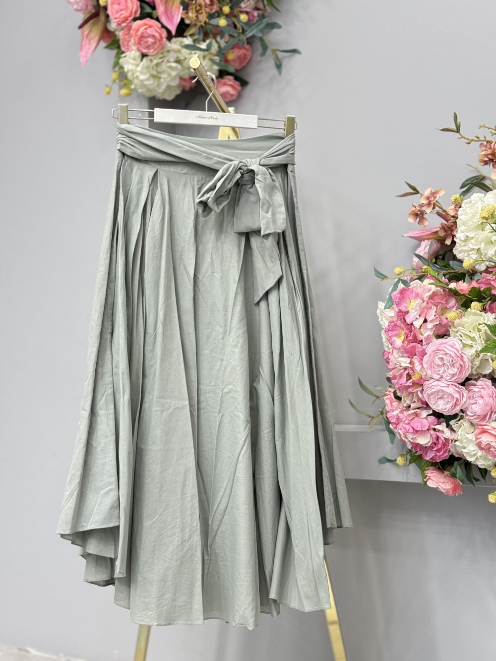 32420 Kırışık Beli Kuşaklı Etek Çağla