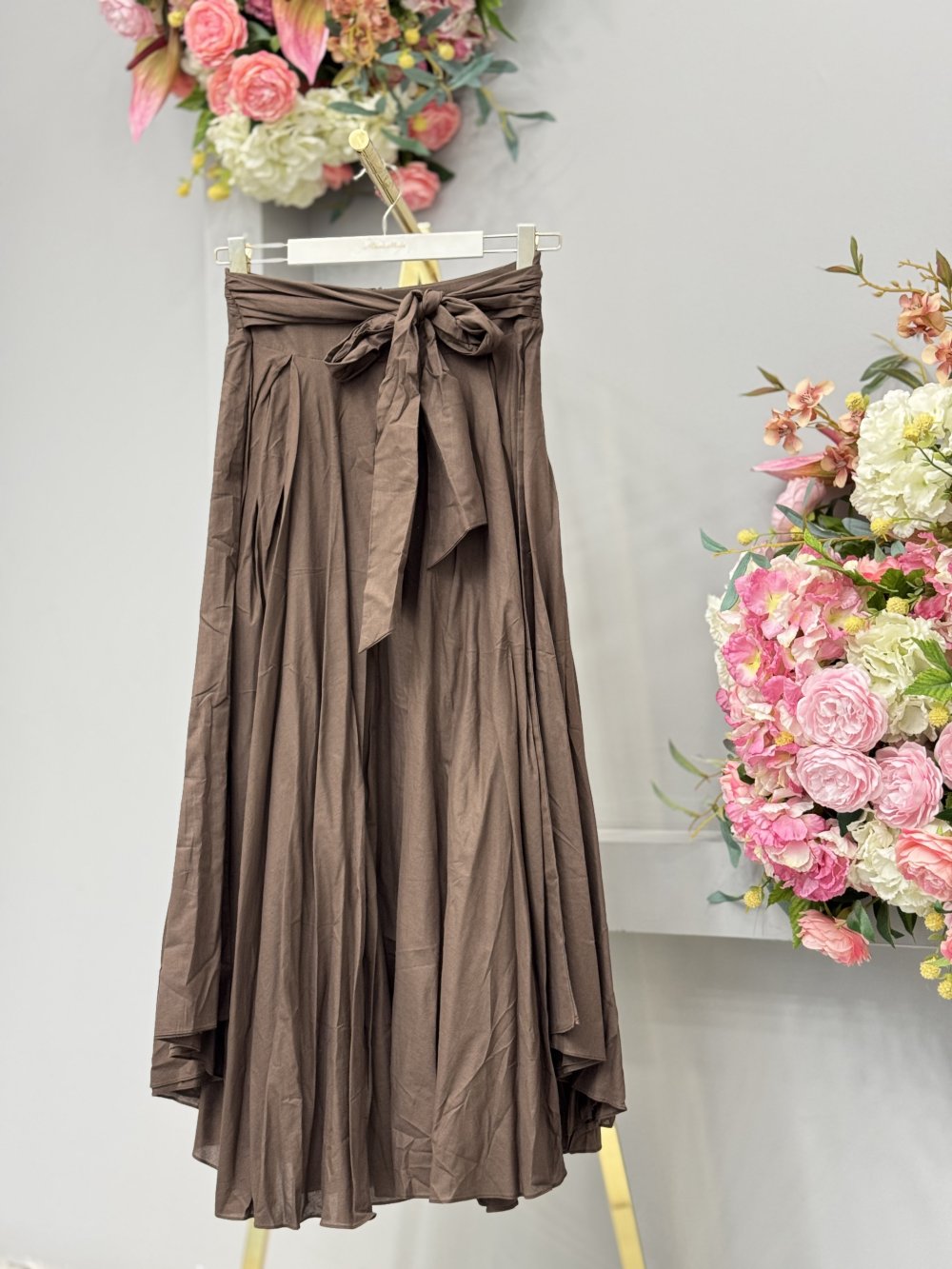 32420 Kırışık Beli Kuşaklı Etek Kahve