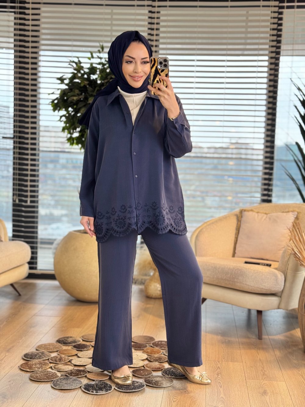 3325 Etek Ucu Nakış Detaylı Takım Lacivert