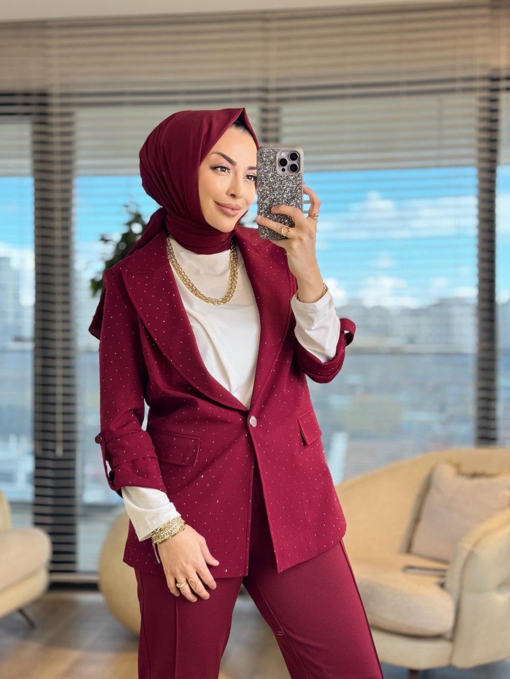 34720 Taşlı Kol Detaylı Ceket Bordo