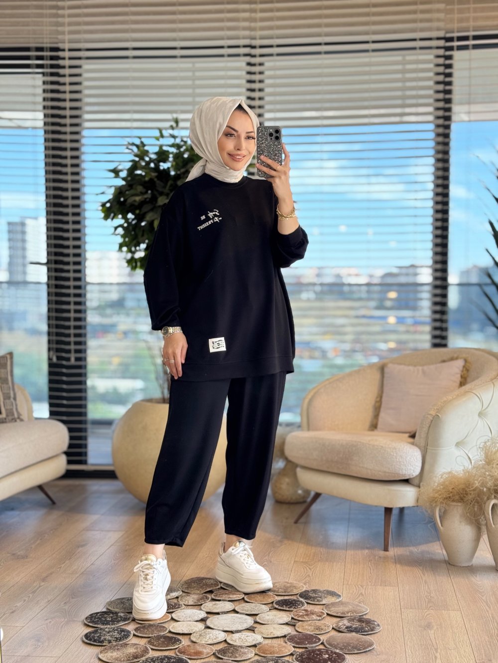 35097 Yüksek Baskı Ve Etiket Detaylı Takım Siyah