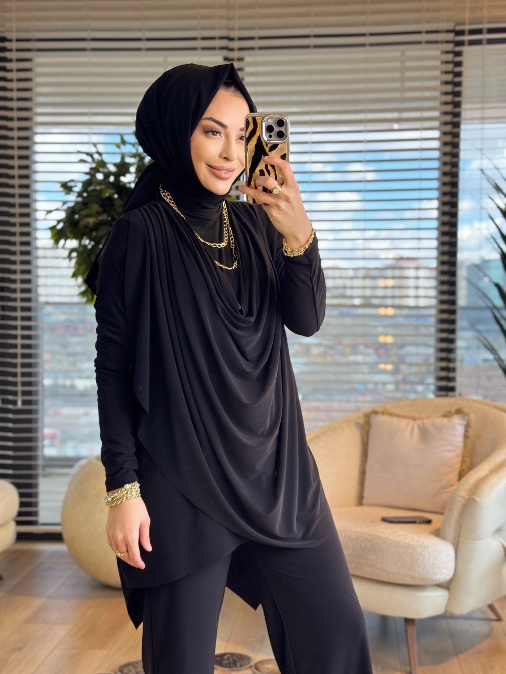 4201 Omzu Pileli Önü Dökümlü Sandy Takım Siyah