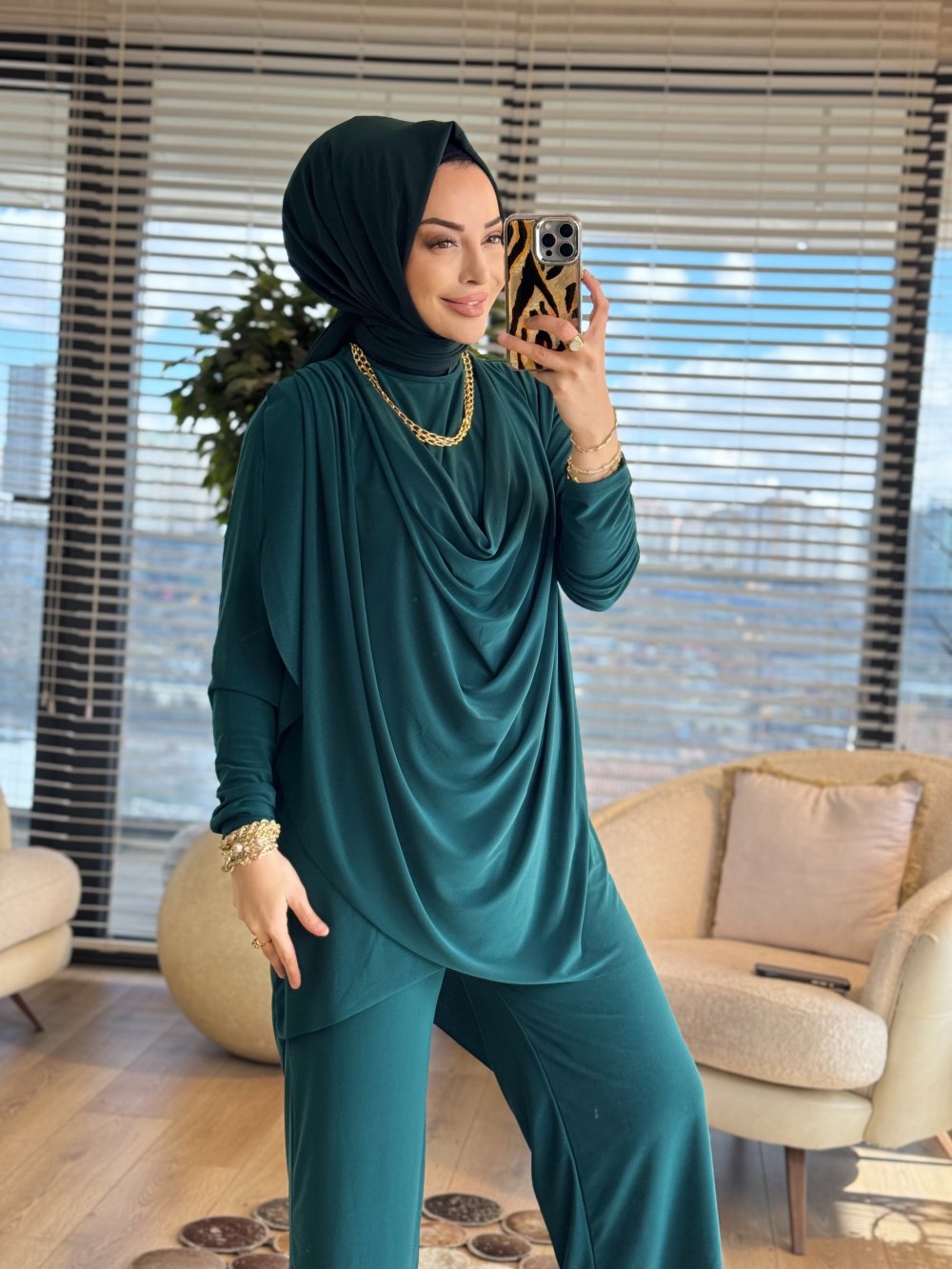 4201 Omzu Pileli Önü Dökümlü Sandy Takım Zümrüt
