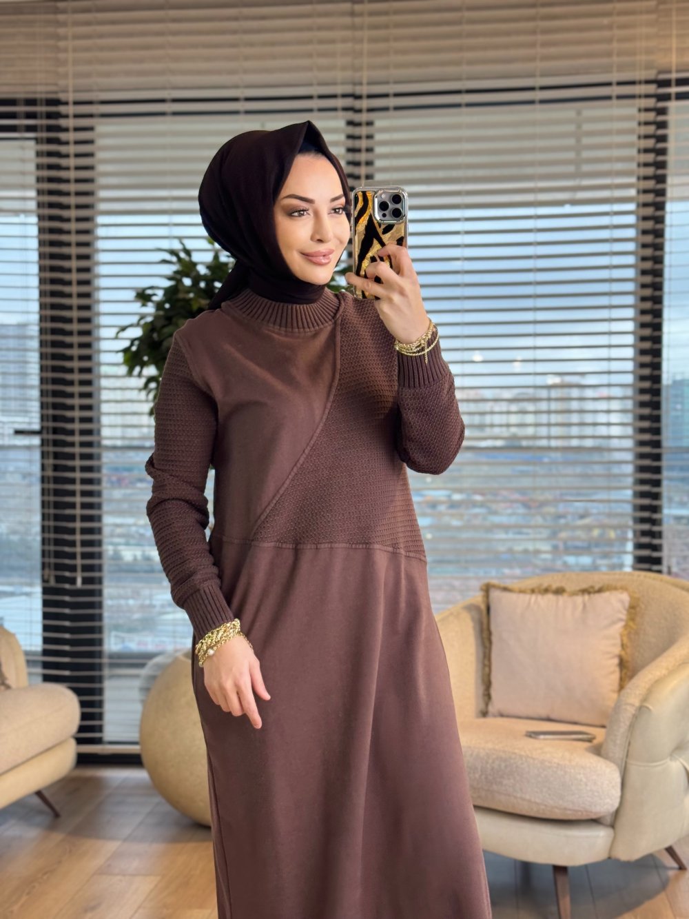 7187 Nokta Örgü İki İplik Elbise Kahve
