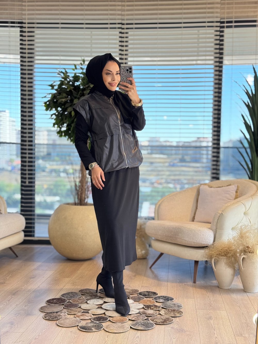 7260 Elbise Üstü Yelekli İkili Takım Siyah