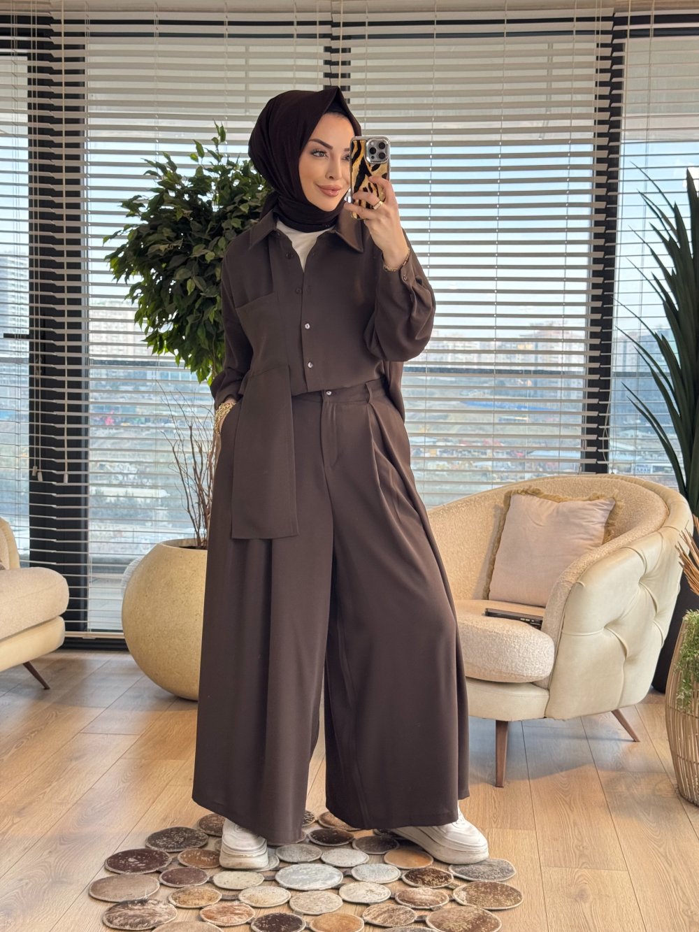 73067 Sol Taraf Parça Ve Cep Detaylı Takım Kahve