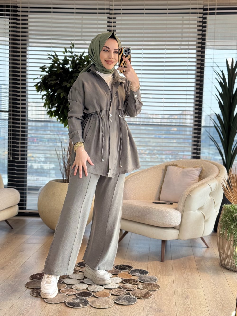 73071 Beli Bağcık Ve Parçalı Fermuarlı Takım Haki