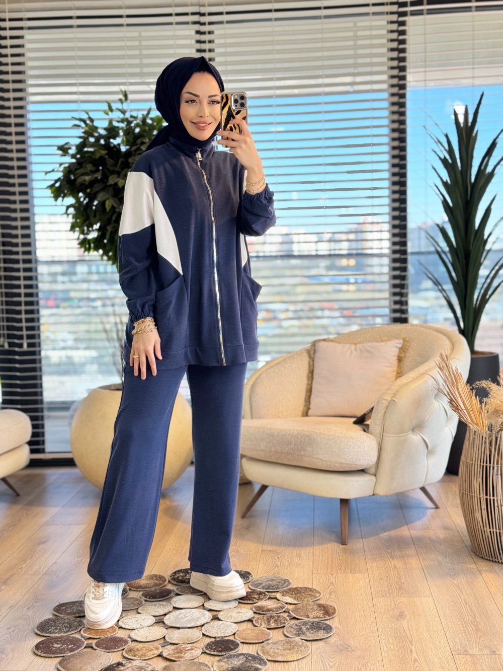 73076 Yanları Cepli Fermuarlı Takım Lacivert