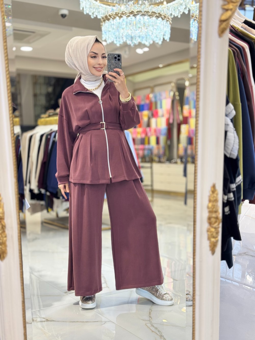 7423 Ön Pile Dikişli Ve Fermuarlı Takım Bordo