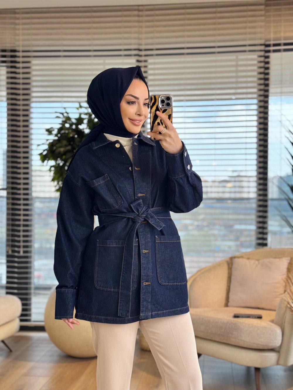 7448 Kot Önü Üç Cepli Ceket Mavi