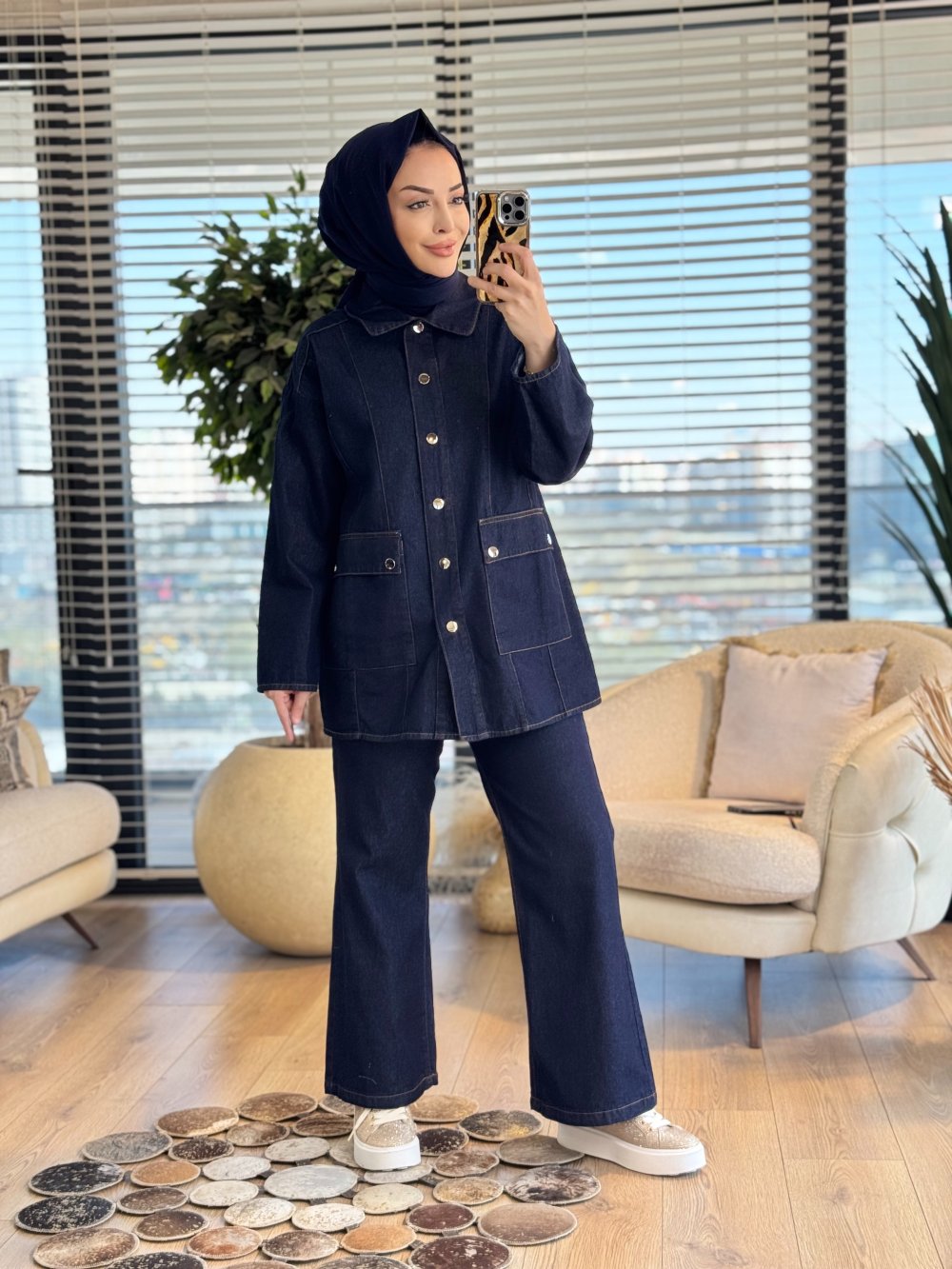 7452 Önü Cep Ve Dikişli Kot Takım Lacivert