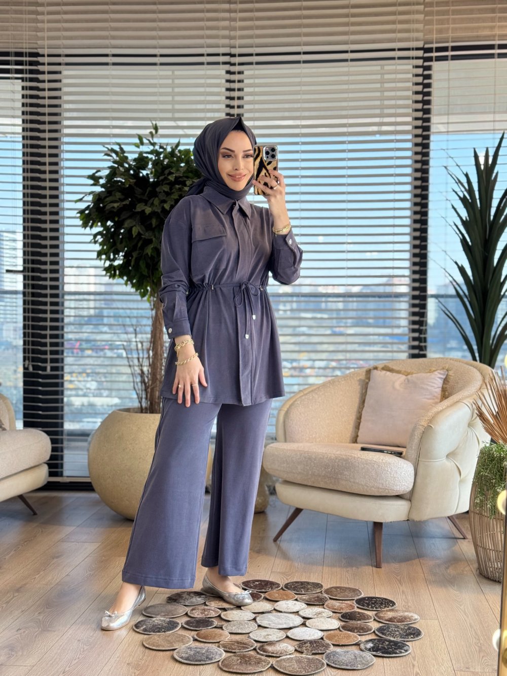 7459 Cepli Beli Büzgülü Takım Lacivert