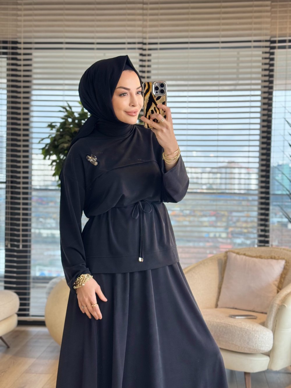 7462 Robası Dikişli Broşlu Takım Siyah