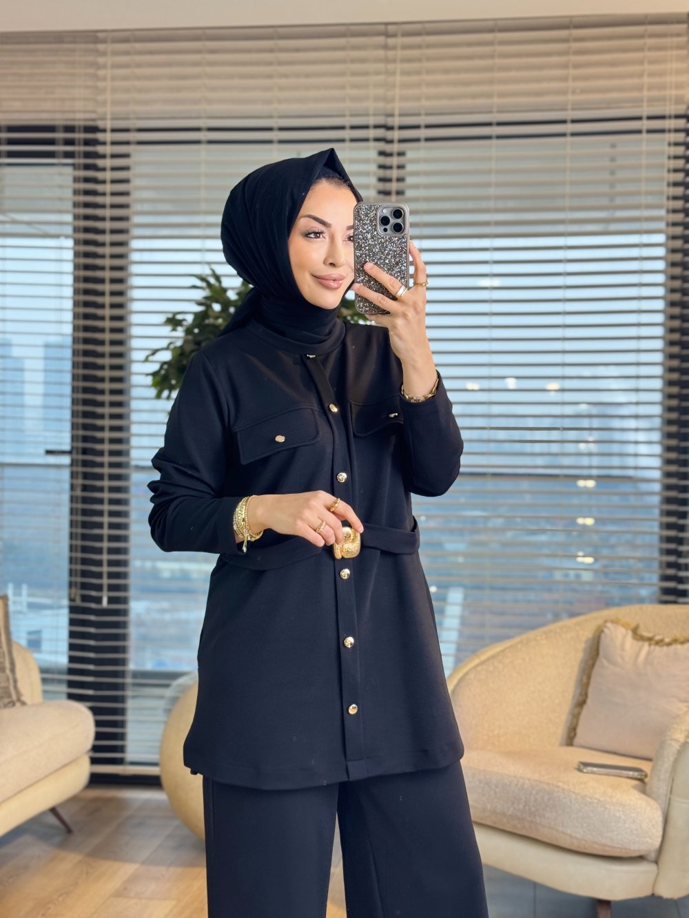 9830 Ön İki Cepli Beli Kemerli Pantolon Siyah