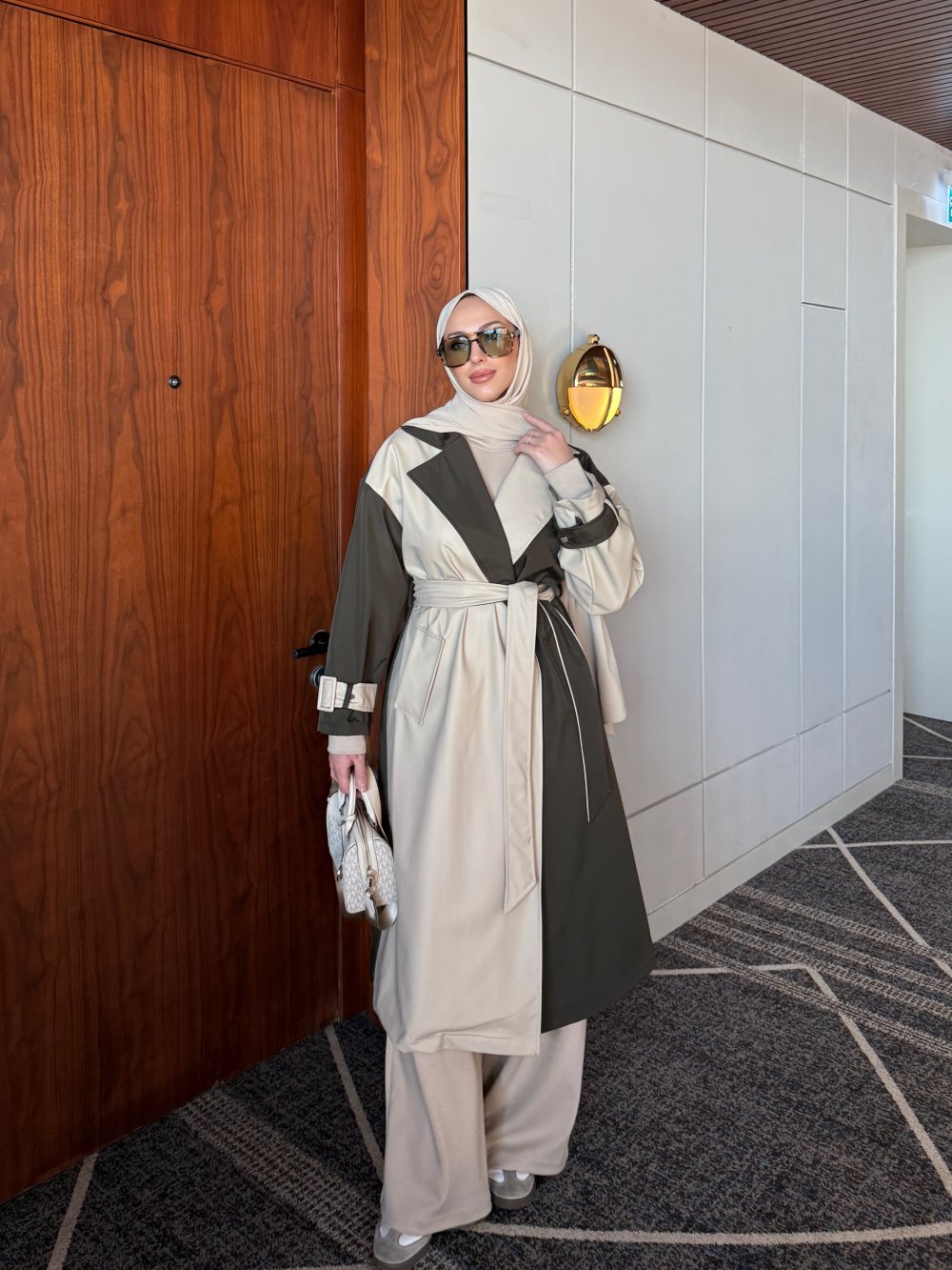 Trençkot İki Farklı Kumaş Detaylıdır.