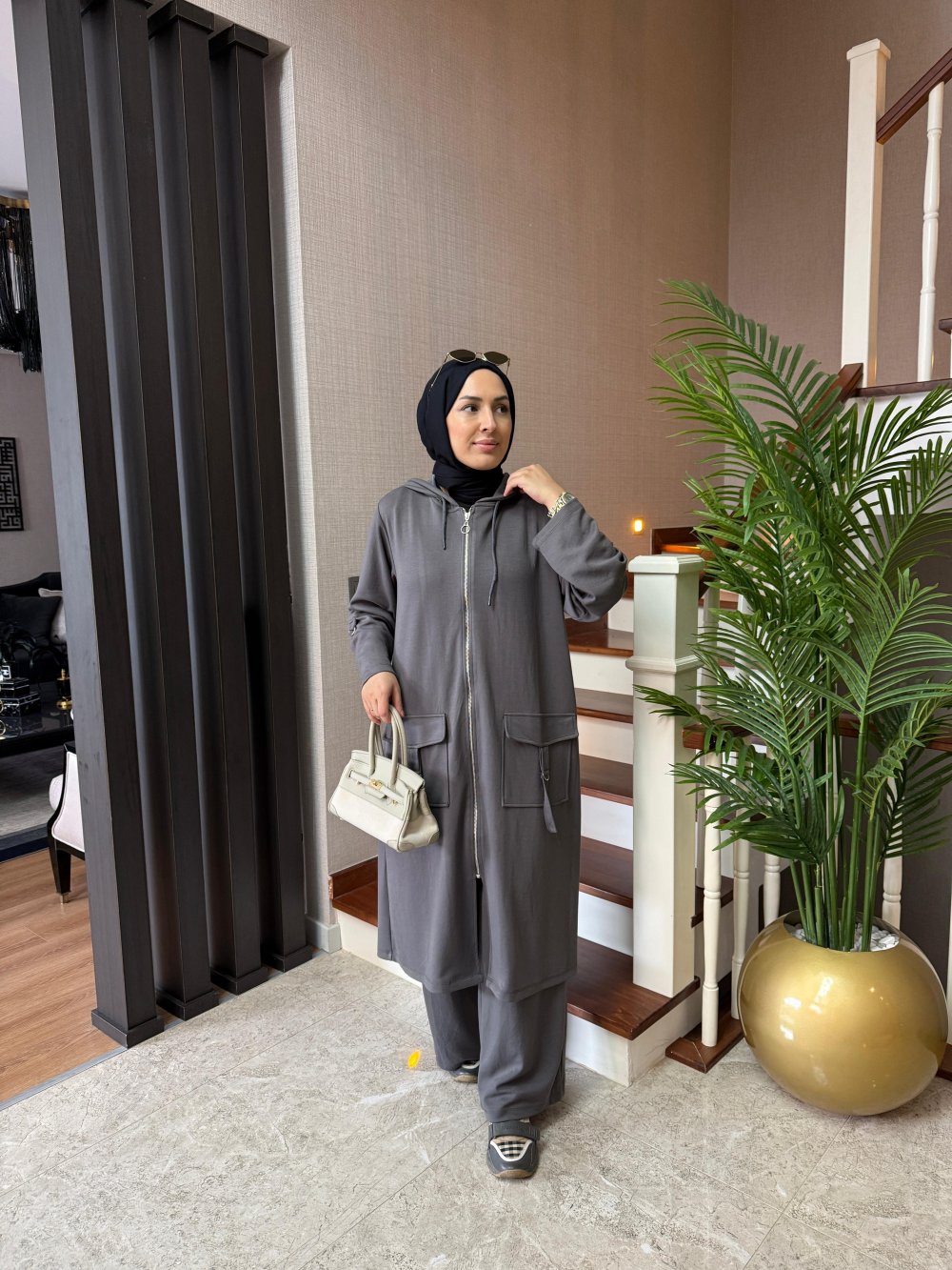 Kap boy 105 cm’dir. Önünde metal dişli fermuarı, yanlarda cepleri bulunmaktadır. Kapüşonludur.