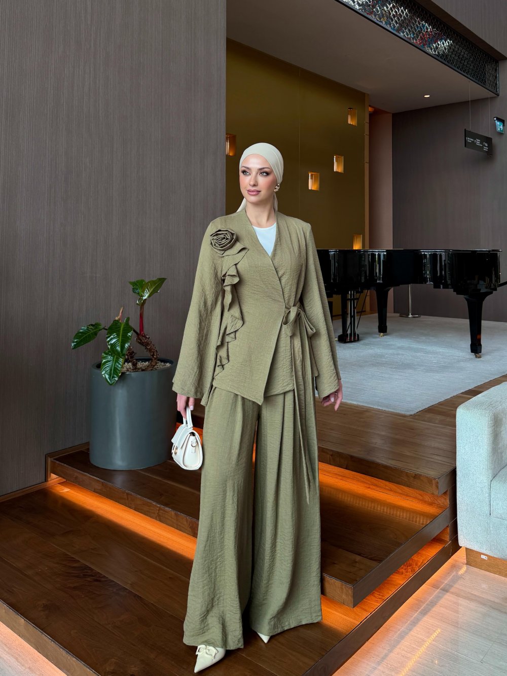 Üst Gömlek Sağ Yakası Fırfırlı Sol Yakası Gül Detaylı
