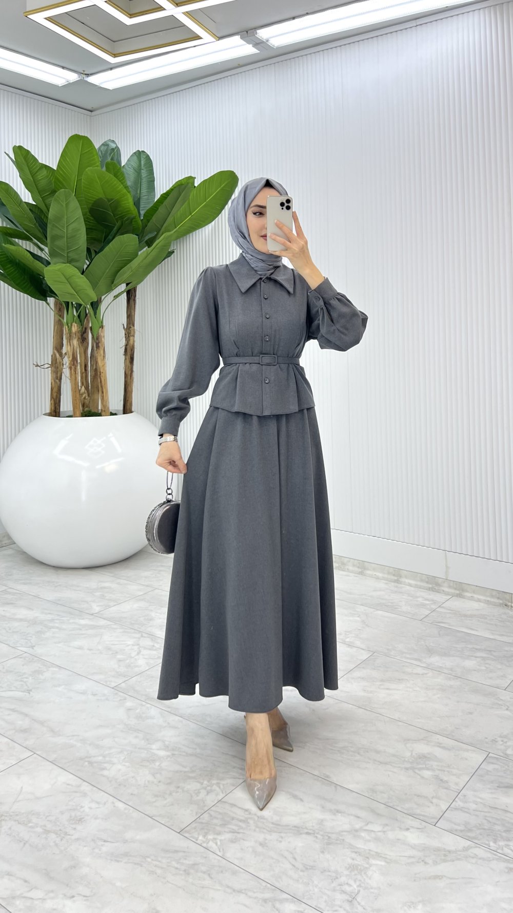Antrasit Eftelya Etek Takım Tesettür Giyim