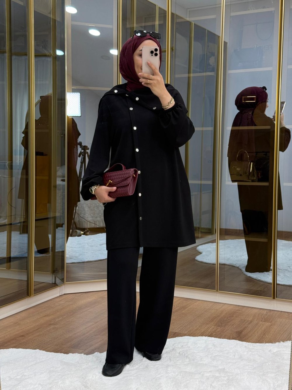 •Asimetrik  metal düğme detaylı takım •