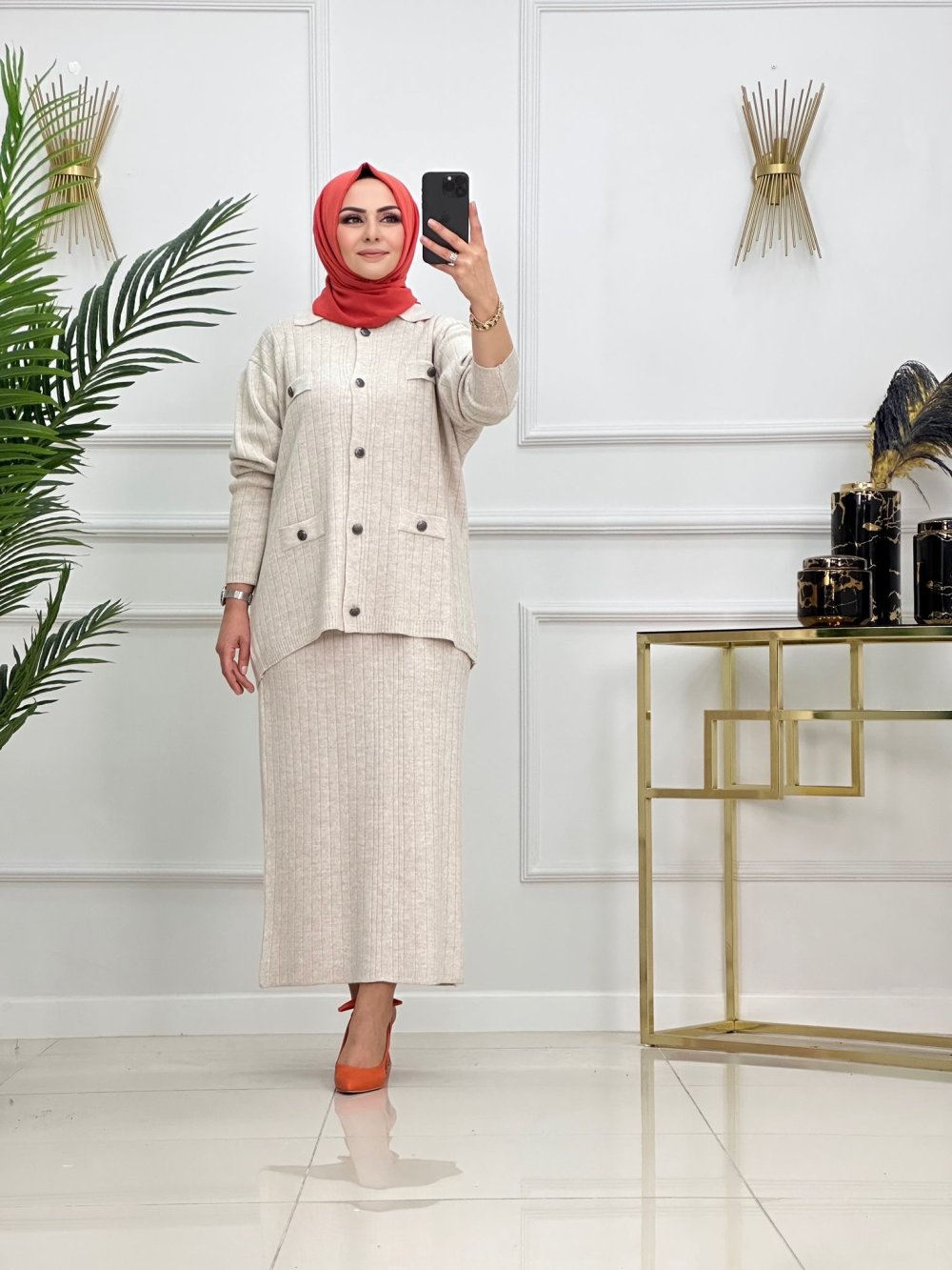AYBÜKE ETEKLİ TAKIM-BEJ