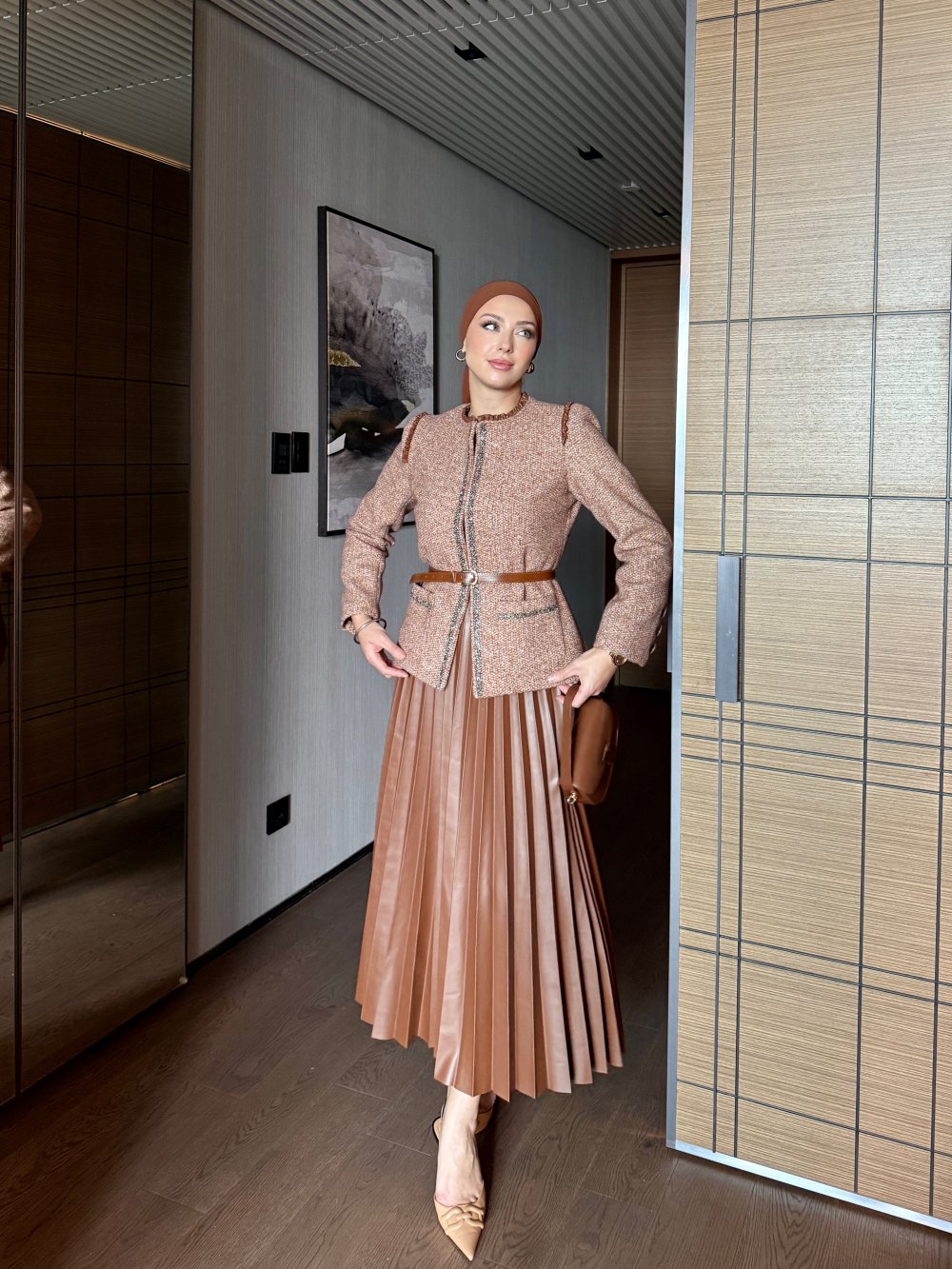 TAKIM CEKET DOKULU KAŞE ETEK DERİ KUMAŞTIR.