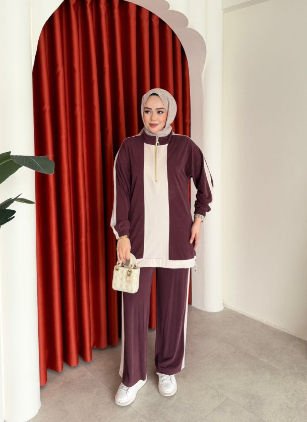 Tunik yakası fermuarlıdır.