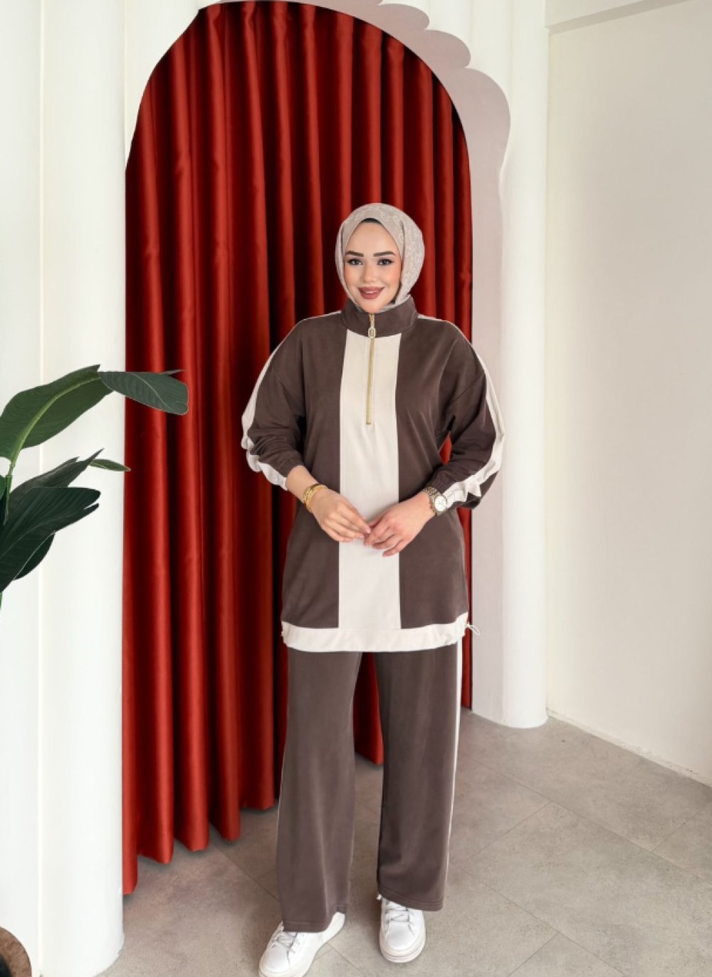 Tunik yakası fermuarlıdır.