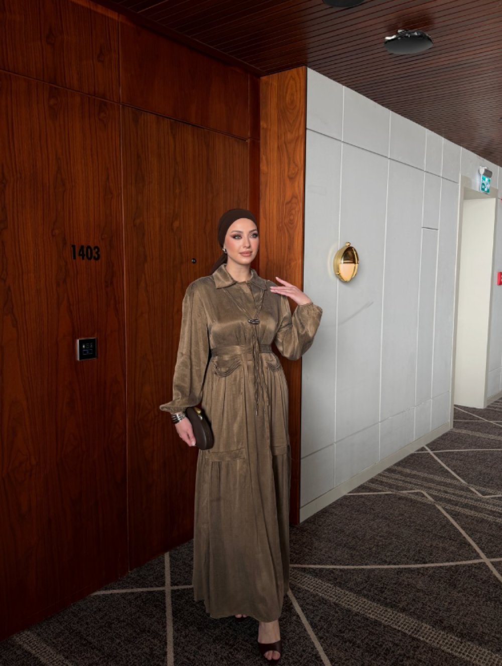 Elbise Boyundan Sarkan Tokalı Aksesuar Detaylıdır.