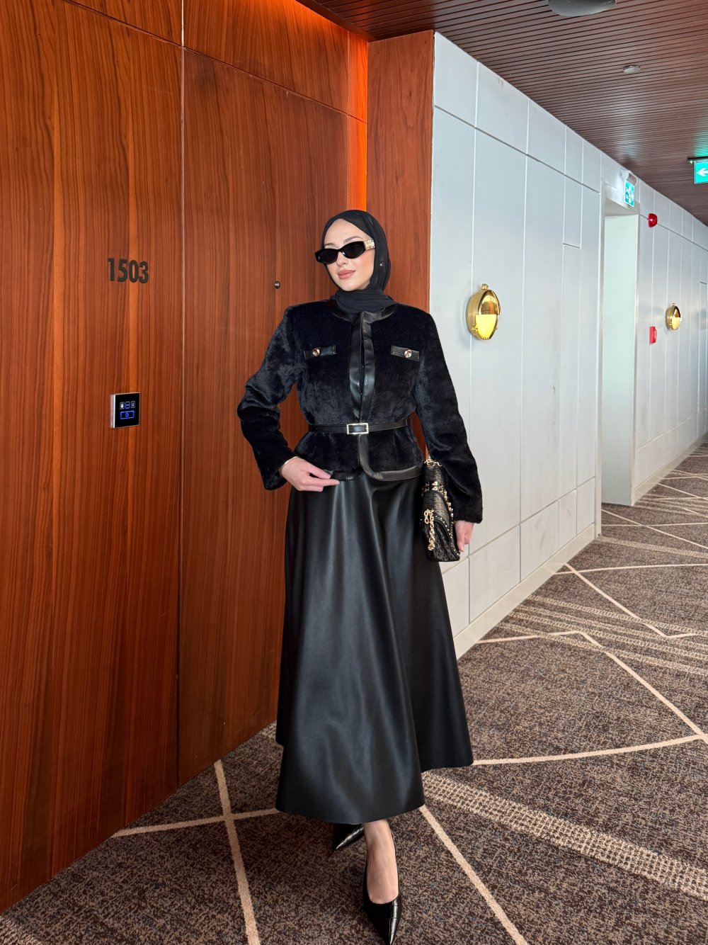 Etek Deri Kumaştır Ve Yandan Fermuarlıdır