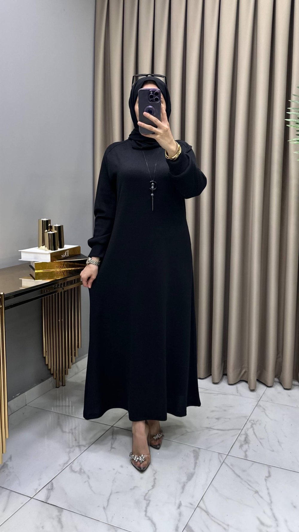Buğlem Elbise Kolye Hediyeli Siyah