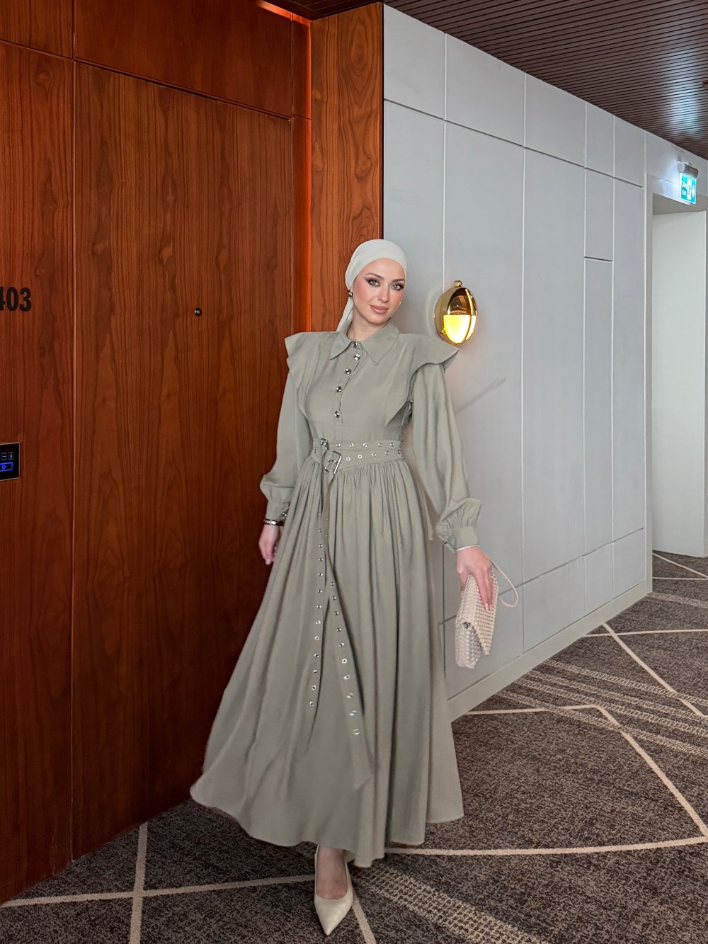Elbise Kuş Gözü Kemer Detayı Mevcuttur.