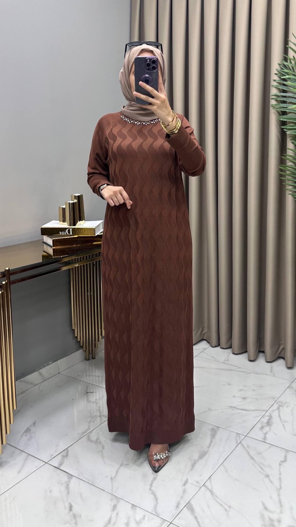Deniz Soğuk Merserize Elbise Kahve